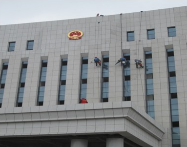 迪邦保潔公司人員正在為“新余法院”做高空外墻清洗。